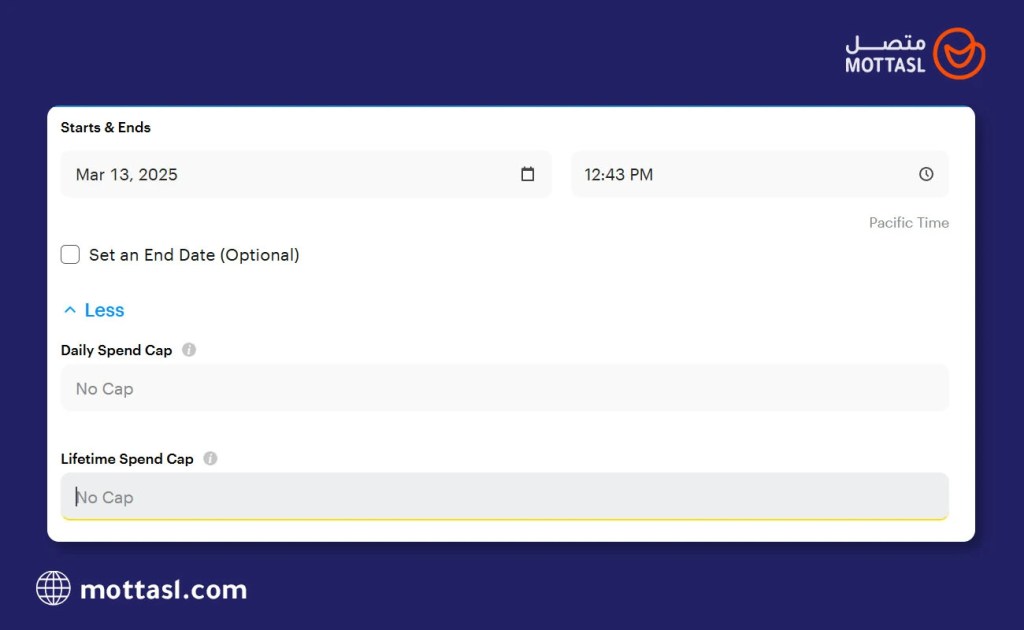 الخطوة الثالثة في طريقة الاعلان في السناب شات أن تقوم بتحديد التاريخ الذي يبدأ فيه إعلانك وتاريخ نهايته، وكذلك الميزانية التي وضعتها من أجل إعلان سناب شات وهل هناك حد معين للإنفاق اليومي تريد وضعه لهذه الحملة، أم أن الميزانية للحملة بالكامل، وعلى سناب شات توزيعها على الأيام بحسب الحاجة.