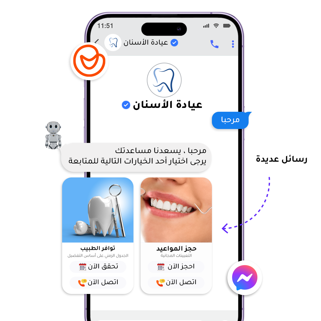 اترك مهمة الاستجابة اللحظية لمراسلات عملائك لشات بوت ماسنجر في متصل وحقق أتمتة الدردشة، لترفع مستوى الخدمة المقدمة لعملائك، وتجعلهم أولوية لأعمالك، وتتمكن من استقبال أي عدد من الرسائل في نفس اللحظة، دون تحميل فريقك لضغط عمل كبير وترك فرص لهم للاهتمام بمهام أكبر.