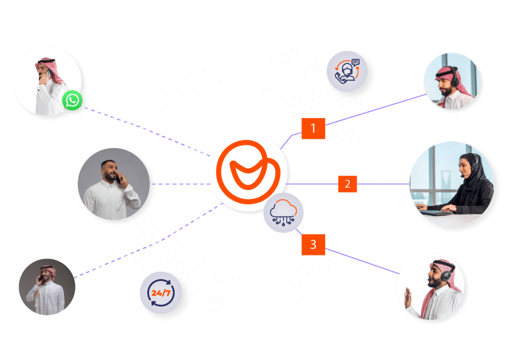 يُعد ربط نظام الكول سنتر السحابي والواتساب المؤسسي من الخدمات التي تقدمها متصل، تتمثل هذه الخدمة في إمكانية تحويل المكالمات الواردة إلى نظام الكول سنتر إلى رسائل على الواتساب، مما يوفر للعملاء خيار متابعة الاستفسارات الخاصة بهم عبر الواتساب