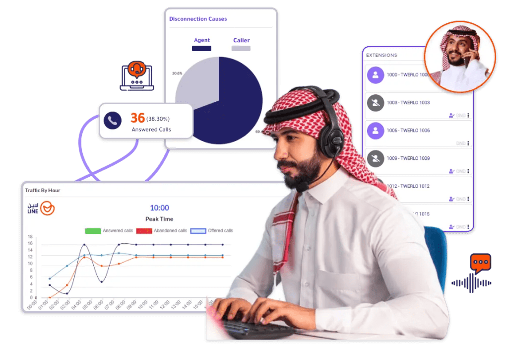 يُمَكنك متصل لاين من تفعيل نظام كول سنتر السحابي على خطوطك وأرقامك باختلاف أنواعها والاستفادة من جميع مزاياه