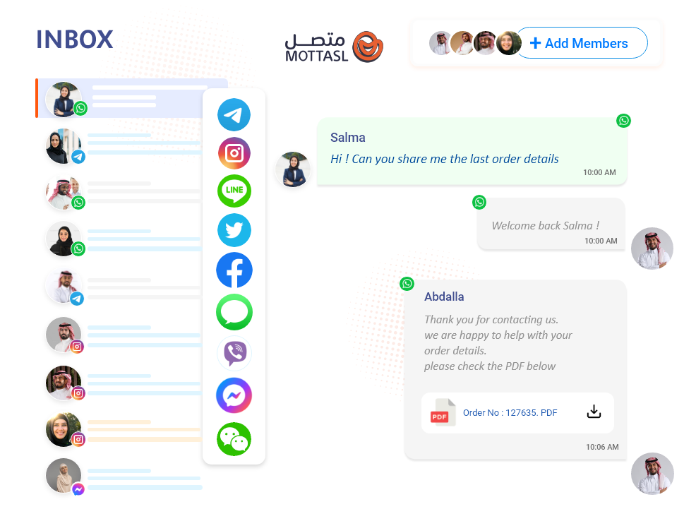 - Handle all your conversations with Mottasl’s user-friendly and adaptable team inbox.