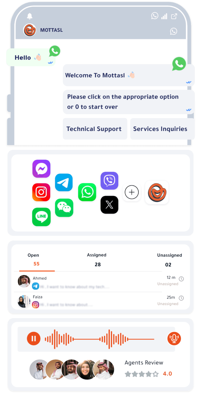 The Integrated Platform that helps your business in Enhancing your Customer service by WhatsApp Business API Mottasl Chatbot Mottasl Omnichannel Platform And many more